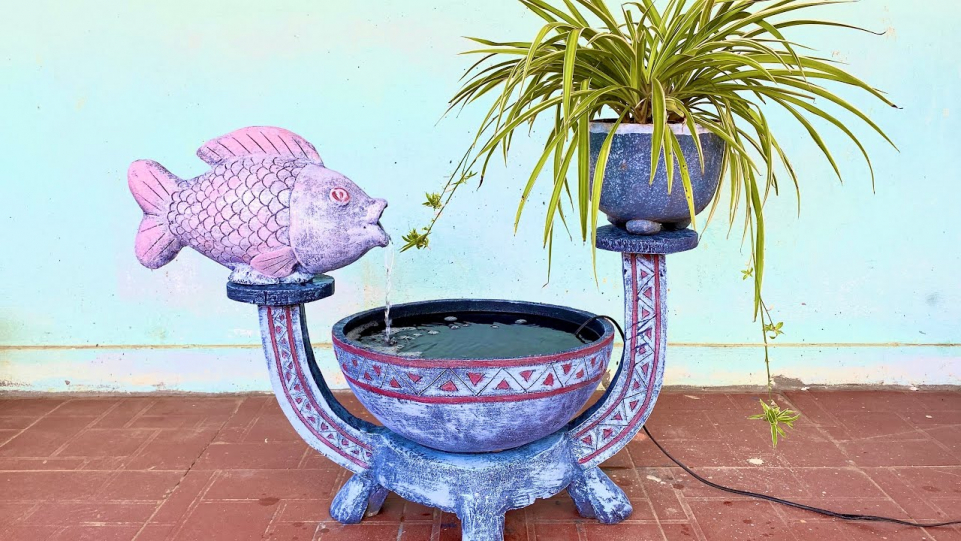 Home decorating ideas | DIY unique design cement fountain to decorate your garden