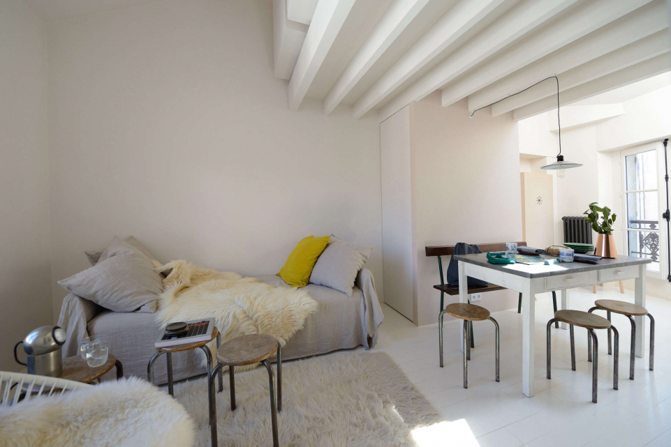 Meet the 21st-century version of the romantic Paris garret. It belongs to a lucky young screenwriter, who was still a student when she moved in. And, thanks to Anki Linde and Pierre Saalburg, the husband-and-wife team behind LSL Architects, her 26-square meter (approximately 280-square-foot) space is a now compendium of inspired tight-living solutions.
